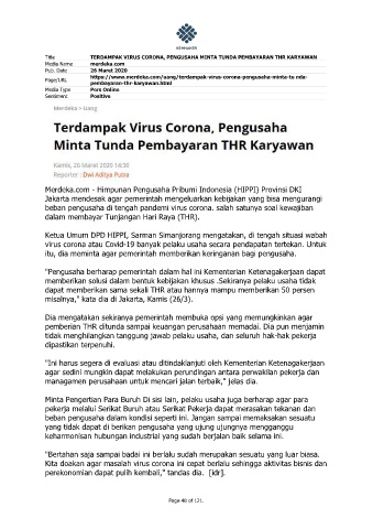 Title TERDAMPAK VIRUS CORONA, PENGUSAHA MINTA TUNDA PEMBAYARAN THR KARYAWAN