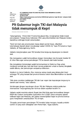 Title PLT GUBERNUR INGIN TKI DARI MALAYSIA TIDAK MENUMPUK DI KEPRI