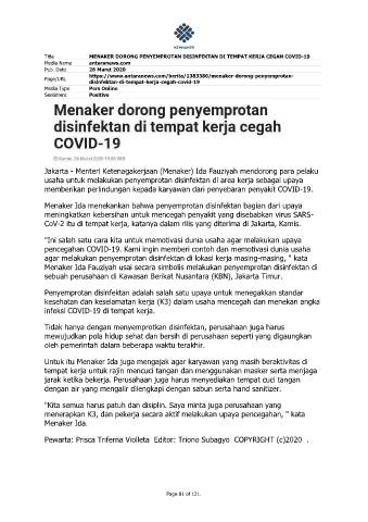 Title MENAKER DORONG PENYEMPROTAN DISINFEKTAN DI TEMPAT KERJA CEGAH COVID-19
