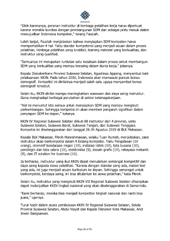 Selain itu, instruktur yang mengikuti KKIN VII Regional Sulawesi Selatan diharapkan