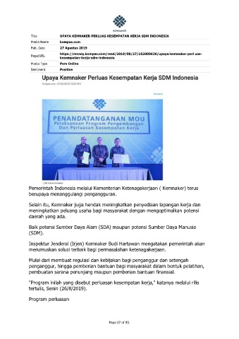 Title UPAYA KEMNAKER PERLUAS KESEMPATAN KERJA SDM INDONESIA