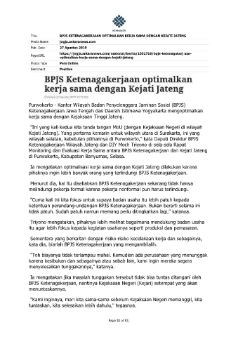 Title BPJS KETENAGAKERJAAN OPTIMALKAN KERJA SAMA DENGAN KEJATI JATENG