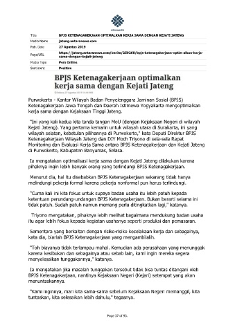 Title BPJS KETENAGAKERJAAN OPTIMALKAN KERJA SAMA DENGAN KEJATI JATENG