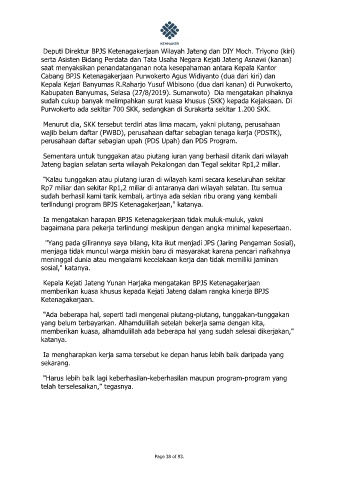 Deputi Direktur BPJS Ketenagakerjaan Wilayah Jateng dan DIY Moch. Triyono (kiri)