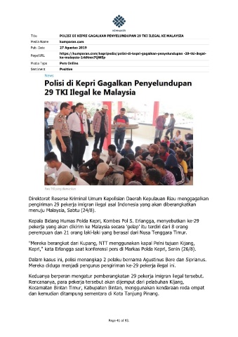 Title POLISI DI KEPRI GAGALKAN PENYELUNDUPAN 29 TKI ILEGAL KE MALAYSIA