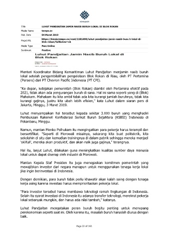 Title LUHUT PANDJAITAN JAMIN NASIB BURUH LOKAL DI BLOK ROKAN