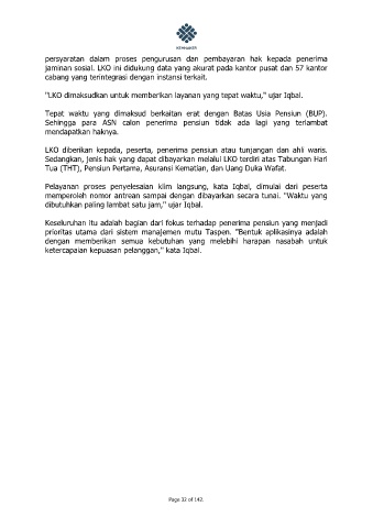 jaminan sosial. LKO ini didukung data yang akurat pada kantor pusat dan 57 kantor