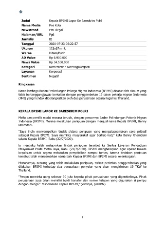 Masyarakat Polda Metro Jaya, Rabu (22/7/2020). BP2MI mengharapkan agar aparat hukum