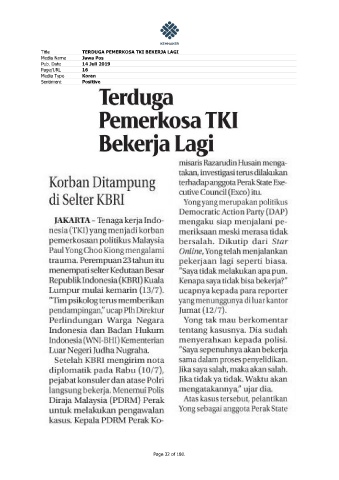 Title TERDUGA PEMERKOSA TKI BEKERJA LAGI Media Name Jawa Pos Pub. Date 14 Juli 2019 Page/URL 16 Media Type Koran Sentiment Positive Page 32 of 180.