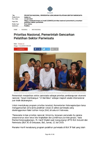 Title PRIORITAS NASIONAL, PEMERINTAH GENCARKAN PELATIHAN SEKTOR PARIWISATA