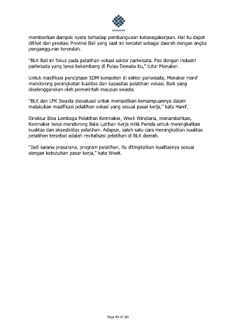 pariwisata yang terus bekembang di Pulau Dewata itu," tutur Menaker.