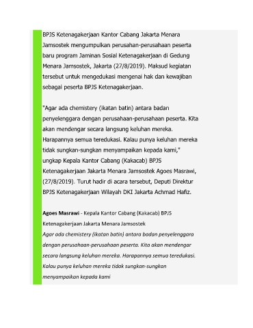 Menara Jamsostek, Jakarta (27/8/2019). Maksud kegiatan
