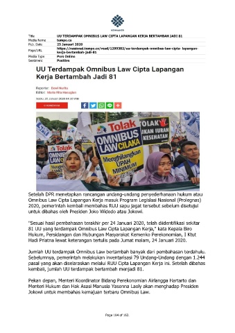 Title UU TERDAMPAK OMNIBUS LAW CIPTA LAPANGAN KERJA BERTAMBAH JADI 81