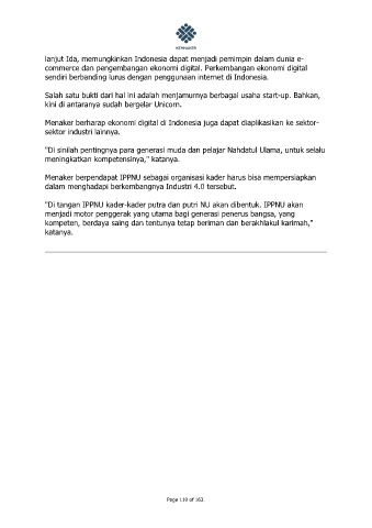 "Di sinilah pentingnya para generasi muda dan pelajar Nahdatul Ulama, untuk selalu