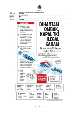 Title DIHANTAM OMBAK, KAPAL TKI ILEGAL KARAM Media Name Riau Post Pub. Date 24 Januari 2020 Page/URL 1&2 Media Type Koran Sentiment Negative Page 118 of 163.