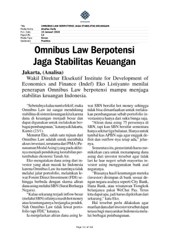Title OMNIBUS LAW BERPOTENSI JAGA STABILITAS KEUANGAN Media Name Analisa Daily Pub. Date 24 Januari 2020 Page/URL 12 Media Type Koran Sentiment Positive Page 121 of 163.