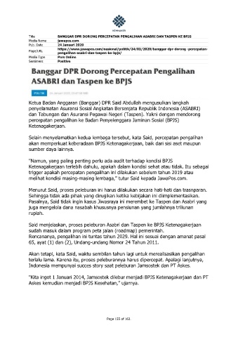 Title BANGGAR DPR DORONG PERCEPATAN PENGALIHAN ASABRI DAN TASPEN KE BPJS