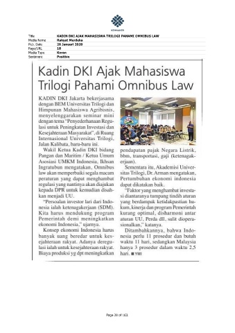 Title KADIN DKI AJAK MAHASISWA TRILOGI PAHAMI OMNIBUS LAW Media Name Rakyat Merdeka Pub. Date 26 Januari 2020 Page/URL 18 Media Type Koran Sentiment Positive Page 28 of 163.
