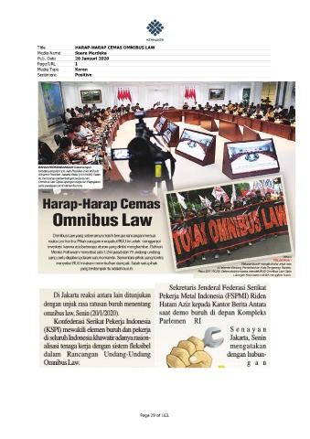 Title HARAP-HARAP CEMAS OMNIBUS LAW Media Name Suara Merdeka Pub. Date 26 Januari 2020 Page/URL 1 Media Type Koran Sentiment Positive Page 29 of 163.