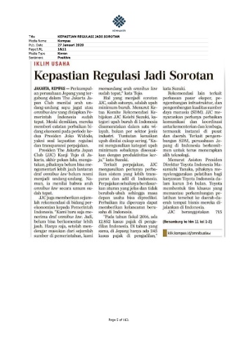 Title KEPASTIAN REGULASI JADI SOROTAN Media Name Kompas Pub. Date 27 Januari 2020 Page/URL 1&11 Media Type Koran Sentiment Positive Page 5 of 163.