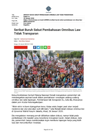 Title SERIKAT BURUH SEBUT PEMBAHASAN OMNIBUS LAW TIDAK TRANSPARAN