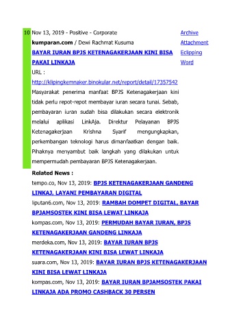 tempo.co, Nov 13, 2019: BPJS KETENAGAKERJAAN GANDENG