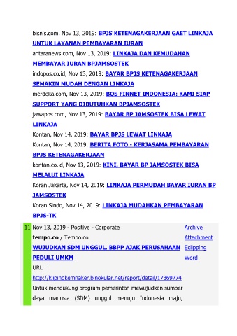 bisnis.com, Nov 13, 2019: BPJS KETENAGAKERJAAN GAET LINKAJA