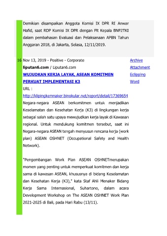 WUJUDKAN KERJA LAYAK, ASEAN KOMITMEN Eclipping