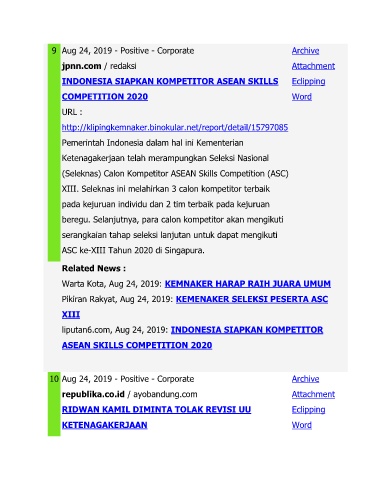 Pikiran Rakyat, Aug 24, 2019: KEMENAKER SELEKSI PESERTA ASC