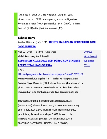 KEMNAKER NILAI SOAL SDM PERLU ADA SINERGI Eclipping