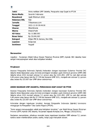 ANIES NAIKKAN UMP JAKARTA, PENGUSAHA SIAP GUGAT KE PTUN