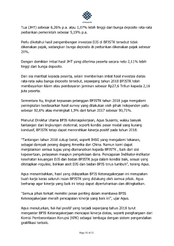 rata-rata suku bunga deposito tersebut, sepanjang tahun 2018 BPJSTK telah