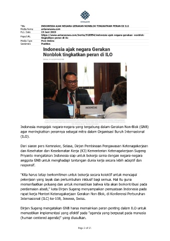 Title INDONESIA AJAK NEGARA GERAKAN NONBLOK TINGKATKAN PERAN DI ILO