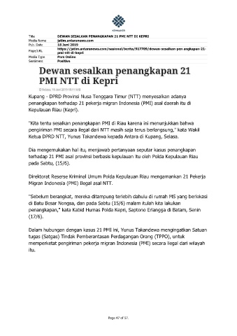 Title DEWAN SESALKAN PENANGKAPAN 21 PMI NTT DI KEPRI
