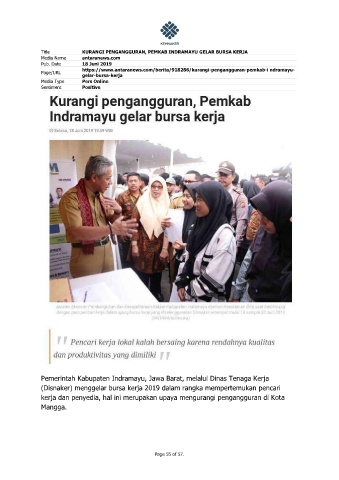 Title KURANGI PENGANGGURAN, PEMKAB INDRAMAYU GELAR BURSA KERJA