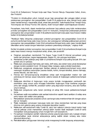 perkantoran/tempat kerja pada masa transisi, dan pelanggaran terhadap pelaksanaan protokol