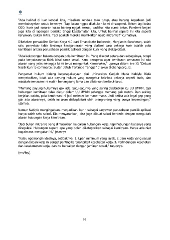 menyebutkan, tidak ada payung hukum yang mengatur hak-hak pekerja seperti kurir, dan