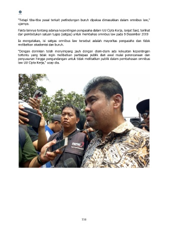 Ia mengatakan, isi satgas omnibus law tersebut adalah mayoritas pengusaha dan tidak