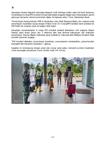 menjelaskan 6 orang PMI tersebut berhasil diamankan Anggota Satgas saat melaksanakan patroli