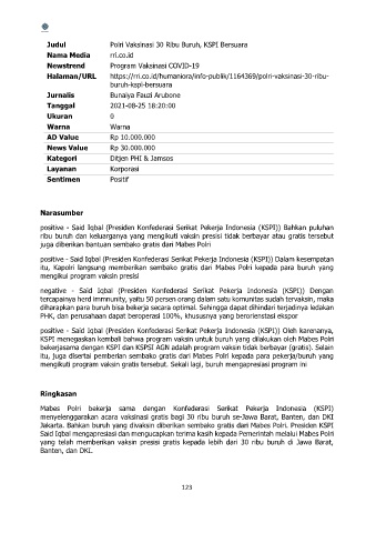 KSPI menegaskan kembali bahwa program vaksin untuk buruh yang dilakukan oleh Mabes Polri