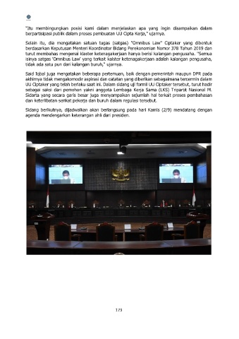 berpartisipasi publik dalam proses pembuatan UU Cipta Kerja," ujarnya.