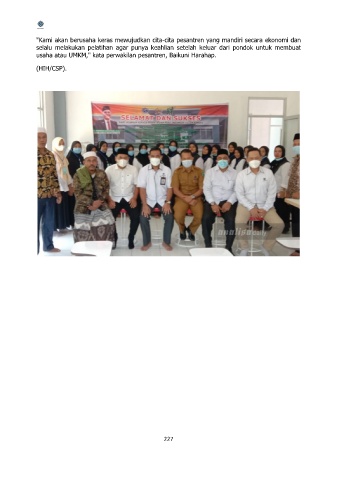 usaha atau UMKM," kata perwakilan pesantren, Baikuni Harahap.