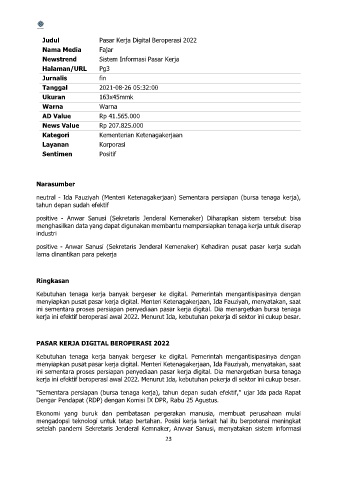 positive - Anwar Sanusi (Sekretaris Jenderal Kemenaker) Diharapkan sistem tersebut bisa