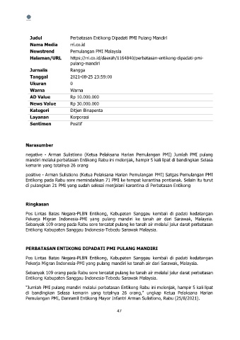 negative - Arman Sulistiono (Ketua Pelaksana Harian Pemulangan PMI) Jumlah PMI pulang