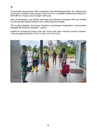 "Pemeriksaan barang bawaan PMI di laksanakan oleh pihak Beacukai Badau dan imigrasi serta