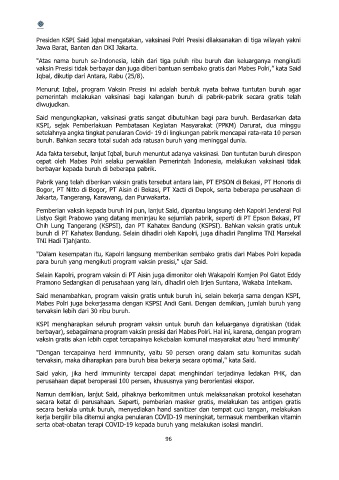 Presiden KSPI Said Iqbal mengatakan, vaksinasi Polri Presisi dilaksanakan di tiga wilayah yakni