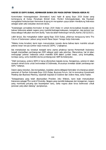 "Kedatangan perwakilan Kemnaker di Expo 2020 Dubai ini untuk menunjukkan kepada dunia