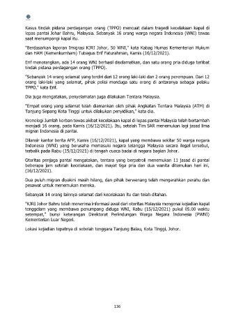 lepas pantai Johar Bahru, Malaysia. Sebanyak 16 orang warga negara Indonesia (WNI) tewas