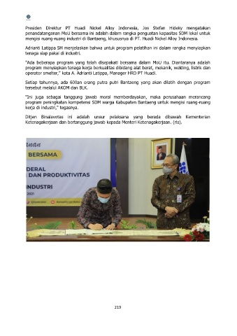 operator smelter," kata A. Adrianti Latippa, Manager HRD PT Huadi.