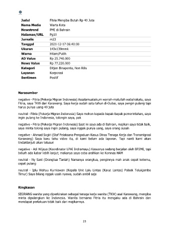 negative - Fitria (Pekerja Migran Indonesia) Saat ini saya ada di Bahrain, majikan saya tidak baik,